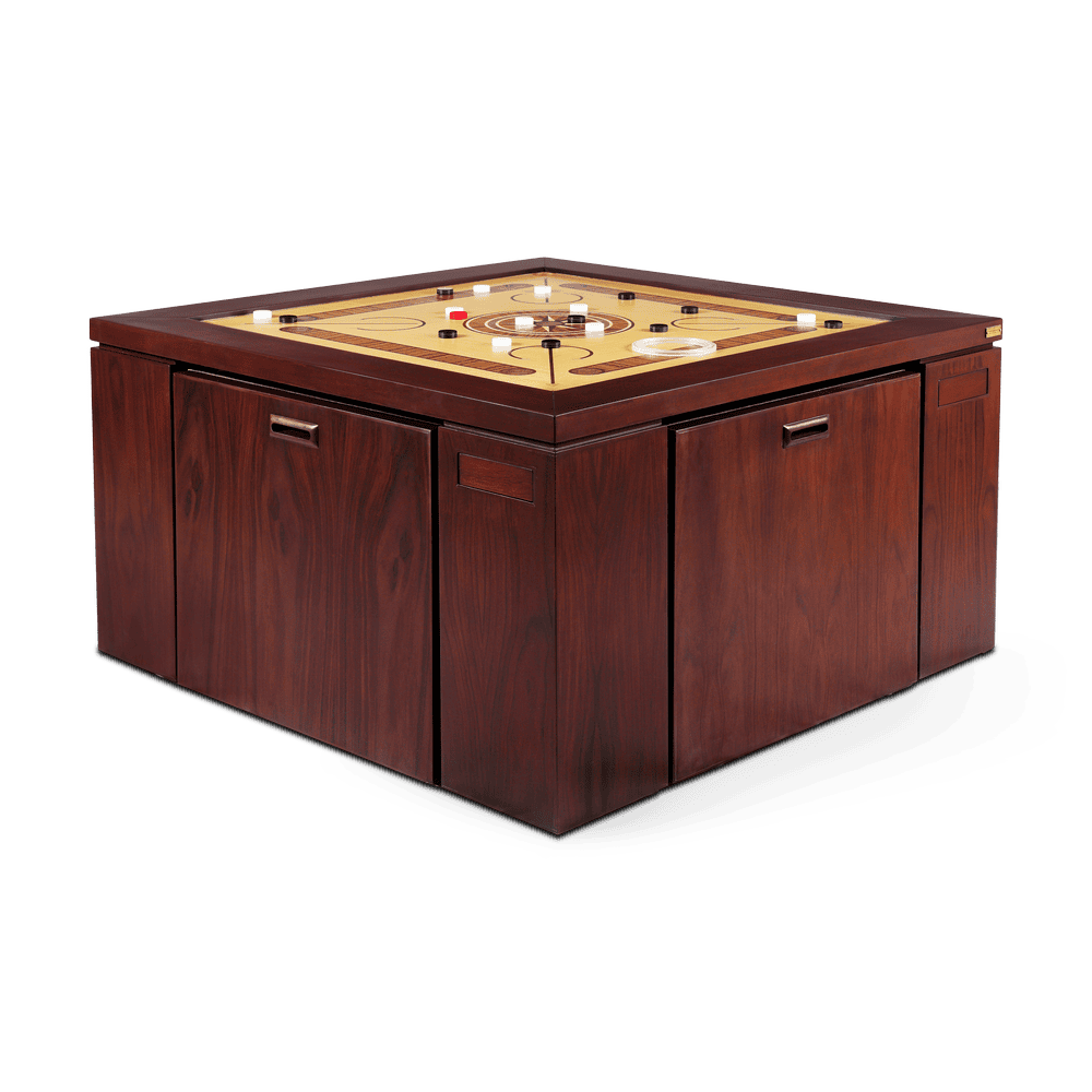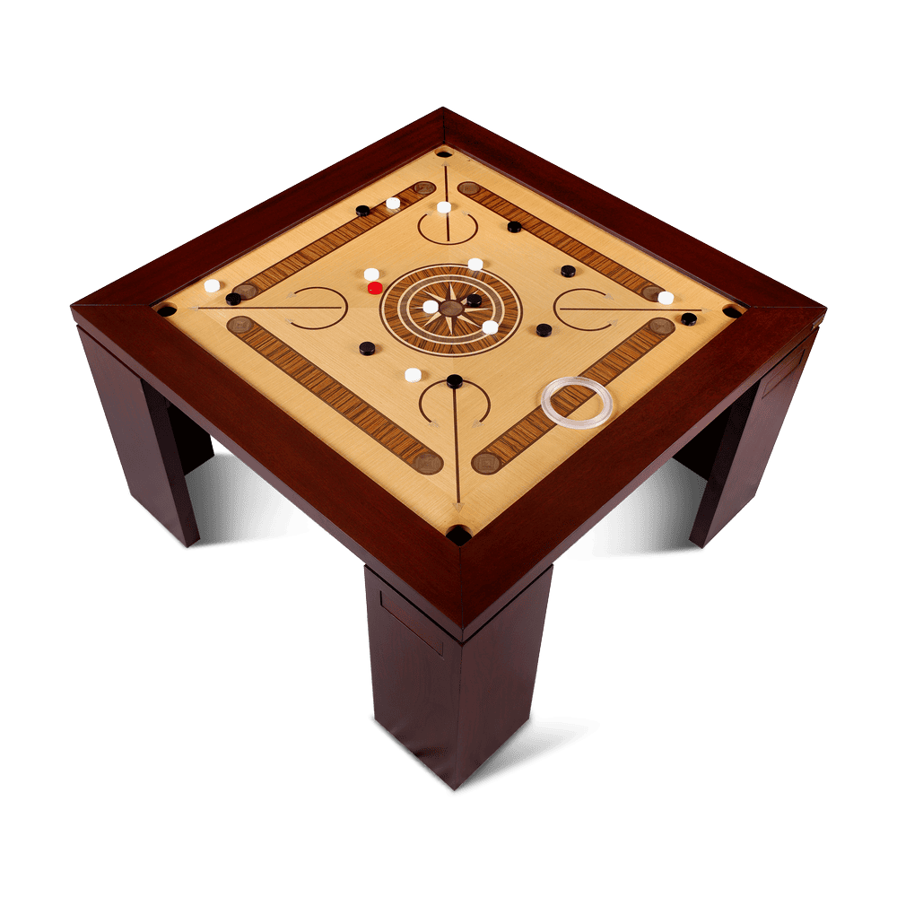 The Carom Board is a beautifully crafted game table, perfect for family entertainment with its sleek design and durable construction.