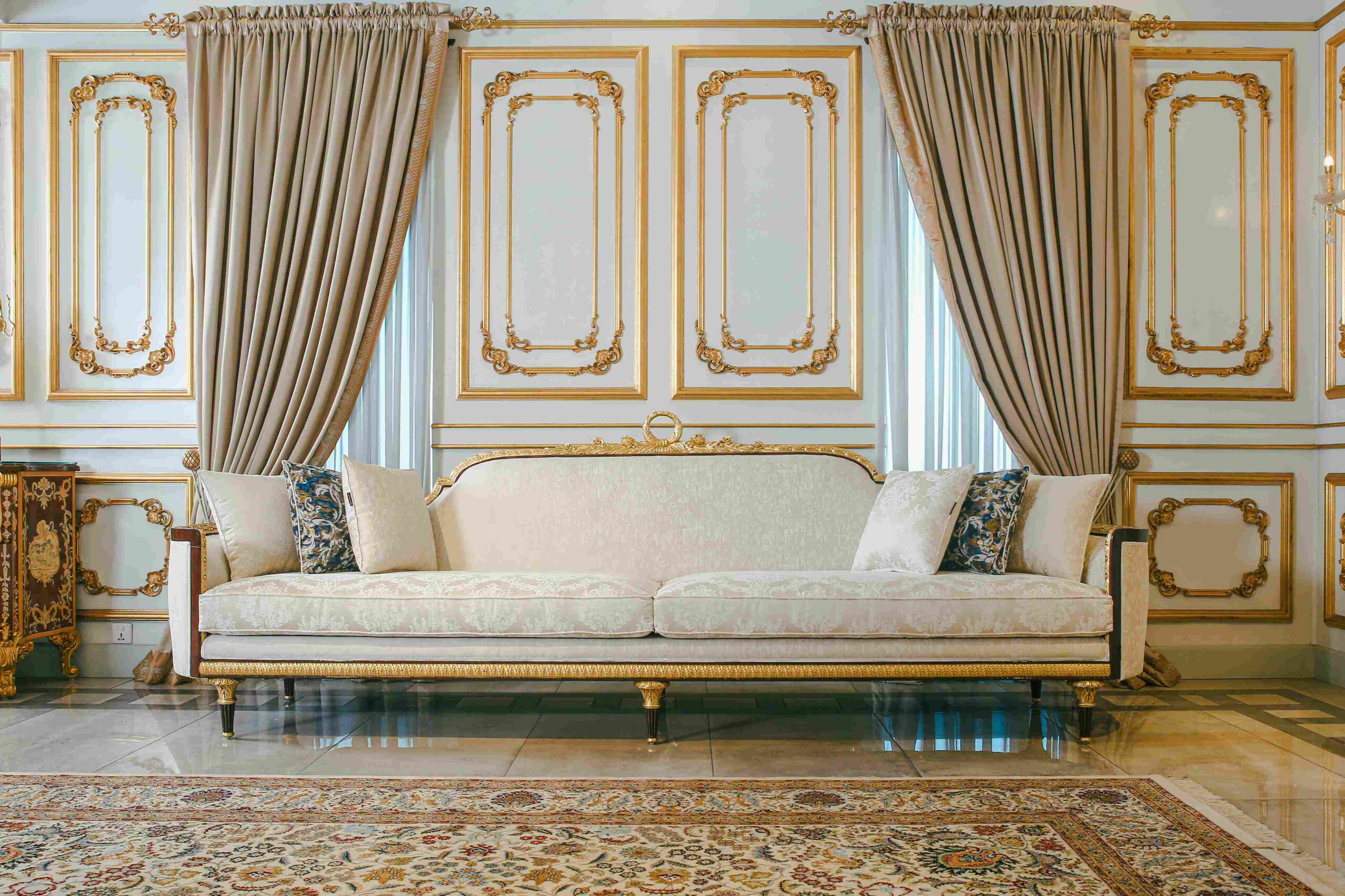Luxurious sofa with rich Moroccan design — perfect for cultural and cozy interiors.