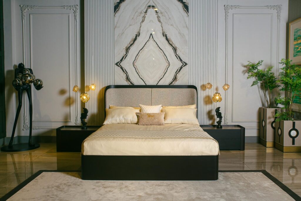 The Unesco Bedset is a luxurious bedroom ensemble, featuring a sleek bed frame and elegant design for ultimate comfort and style.